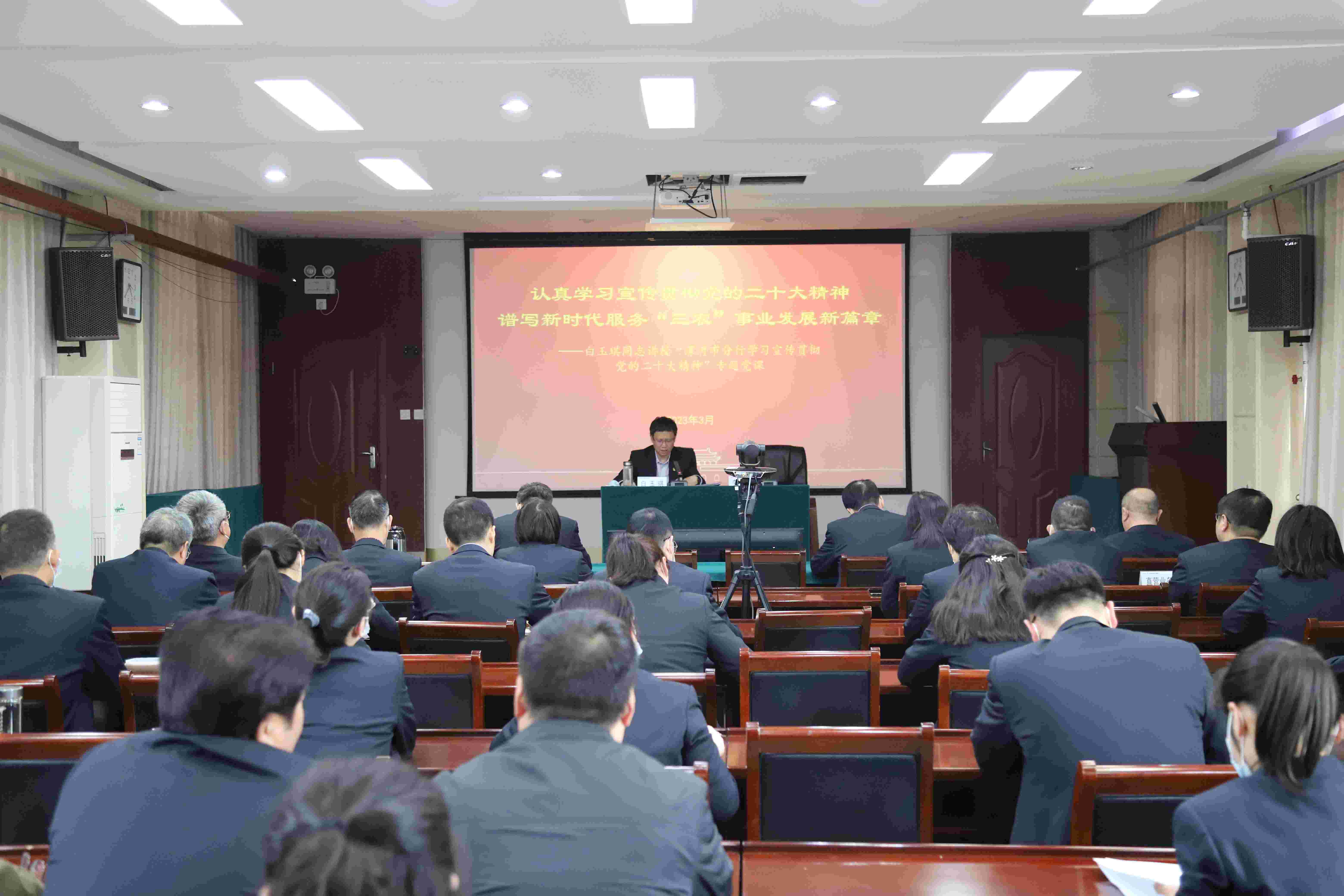 白玉琪强调,党的二十大报告提出了一系列新的重大思想观点、重大判断、重大举措,集中体现了十八大以来我们党理论创新、实践创新的新成果,具有极强的政治性、思想性、理论性和工作的指导性,我们要认真学习、深刻领会、准确把握。一是深刻领会和把握过去五年工作和新时代十年伟大变革的重大意义二是深刻领会和把握习近平新时代中国特色社会主义思想的世界观和方法论。三是深刻领会和把握以中国式现代化全面推进中华民族伟大复兴的使命任务。四是深刻领会和把握以党的伟大自我革命引领伟大社会革命的重要要求。五是深刻领会和把握团结奋斗的时代要求。团结奋斗是中国人民创造历史伟业的必由之路,也是中国共产党和中国人民的显著精神标识。