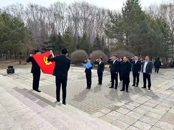 在烈士陵园的纪念碑前,参加活动的党员们身着正装,党员佩戴党徽,列队齐整,面对鲜红的党旗,庄严的举起右手,重温入党誓词,“我志愿加入中国共产党……”誓词句句铿锵有力,久久回荡在空中。