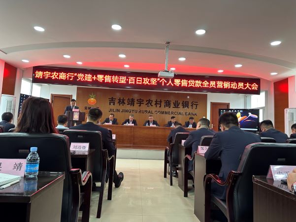 金融文化参讯-吉林(任鹤)为贯彻落实吉林省农信联社“五大核心理念”“十大工程”战略,推进“零售转型”顺利开展,全方面挖掘市场潜力,牢牢守住和拓展本土市场,靖宇农商银行党委研究决定,在全辖范围内开展“党建+零售转型·百日攻坚”非农个人零售贷款竞赛活动。为确保本次活动顺利开展,迅速掀起贷款营销工作热潮,2023年4月7日,在该行五楼会议室隆重举行本次启动大会。班子成员,中层经理、副经理、支行长、信贷人员及分理处负责人共67人参加会议。