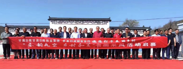 金融文化参讯-甘肃(王九鼎)近日,在宁县委县政府的大力支持下,农发行庆阳市分行瓦窑村驻村帮扶工作队联合甘肃日报社、甘肃日报报业集团,组织开展“春韵瓦窑·乡村和美”书画采风活动。活动共邀请庆阳地区中省书美协24位书画名家走进瓦窑,观乡村之美、产业之兴,以笔墨描绘新时代新农村迷人美景,以采风创作学思践悟党的二十大精神。