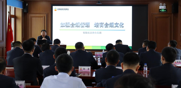 金融文化参讯-吉林(李明燕 陈芸玉 郭勇)为贯彻落实吉林省农信联社年初会议精神,加快“十大工程”建设,强化内控管理,提升内控合规水平,4月25日,省农信联社内控合规宣讲团王全明总经理一行到长白农信联社开展2023年合规巡回宣讲活动。该联社领导班子成员、部室经理、信用社主任参加会议。