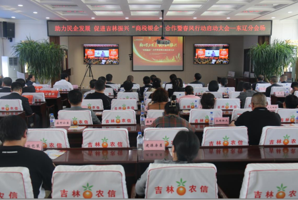 会上,以视频会议方式观看春风行动宣传片、助力民企发展 促进东辽振兴“商税银企”合作暨春风行动启动仪式,会议对《“助力民企发展 促进吉林振兴春风行动”实施方案》进行了解读,对“商税银企”联动合作专属金融产品进行了推介。