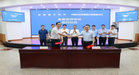 张宝江同志重点介绍农发行安徽分行近年来支持水利基础设施建设情况,并感谢省水利厅长期以来对农发行安徽分行的关心和支持。指出,支持水利基础设施建设是中央一号文件明确农发行的职责和使命,也是农发行打造“水利银行”特色品牌的内在要求。农发行安徽分行将以此次签约为新起点,与省水利厅开启新一轮全面合作,进一步发挥好政策性金融“当先导、补短板、逆周期”职能作用,对列入规划、论证较为成熟的水利项目,加大资源倾斜、开辟绿色通道、提升服务质效,推广政策性金融服务水利建设新模式,为江淮大地河湖安澜、人民安康提供有力金融支撑。