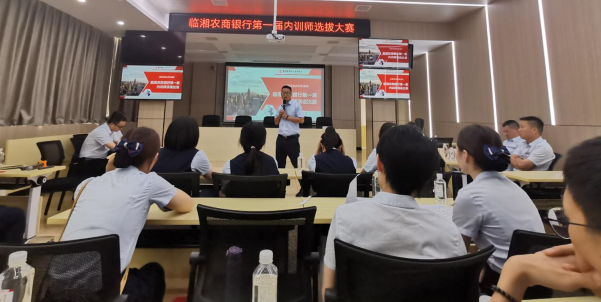 金融文化参讯-湖南(黎阳)为加强员工队伍建设,提高员工综合素质,打造一支素质过硬、业务精湛的内训师团队,5月19日,临湘农商银行在总行六楼会议室召开第一届内训师选拔大赛,该行党委班子、部室经理代表担任评委,进行评选打分。