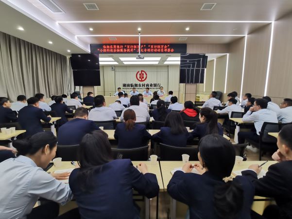金融文化参讯-湖南(黎阳)为积极响应党的二十大号召,推动经济实现质的有效提升和量的合理增长,深入贯彻落实湖南银保监局和省农信联社工作部署,助力乡村振兴事业全面发展,2023年5月24日,临湘农商银行在总行六楼会议室召开“百行联万户”“百行联万企”及小微科技金融服务提升三大专项行动动员部署会,总行班子成员、部室、网点负责人、客户经理共83人参加了本次会议。