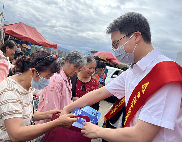 农发行红河州分行发扬党员先锋带头模范作用,坚持以为人民办实事的思想为指导,扎实推进安全宣传进企业、进农村、进社区、进学校、进家庭“五进”活动,围绕安全生产责任落实,在蒙自市土官村便民街道实地开展“社区送安全”宣传工作。充分利用宣传横幅,宣传册,宣传海报等工具,向当地群众宣传安全生产问题,集中宣传安全生产行动,科普安全生产,紧急逃生技能等知识。同时,安排一组人员进入包保小区开展“进门入户送安全”宣传工作。围绕安全生产、电动车使用、夏季防溺水、住宅楼防火防盗逃生等,为社区居民分析日常生活中常见的紧急情况,交流自救互救技能,牢记安全逃生通道和撤离路线,营造社区居民“人人讲安全,个个会应急”“守住钱袋子,护好幸福家”的良好氛围。