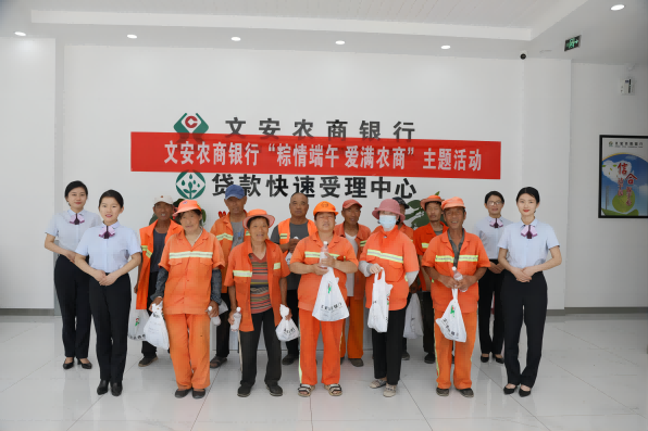 文安农商银行开展爱心驿站迎端午活动。该行员工走向街头,邀请城区附近环卫工人至网点送上粽子及节日的关怀,把温暖送到环卫工人心坎上。工作人员告诉为环卫工人,文安农商银行33个营业网点内设立爱心驿站,配备有饮水机、座椅、空调、医药箱、雨伞、打气筒等用品,为环卫工人提供临时休息、饮水、乘凉、取暖、如厕、医药、无线网络等公益惠民服务。
