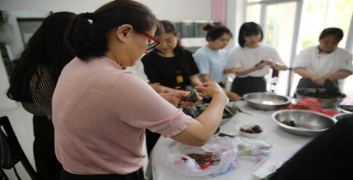 省联社廊坊审计中心在端午来临之际开展包粽子活动。端午前夕食堂将糯米、粽叶、蜜枣、红豆、蜜豆、绳子、剪刀,审计中心各科包粽子志愿者开始包粽子应端午,活动现场欢声笑语,其乐融融,志愿者们各显神通,八仙过海,忙的不亦乐乎,一个个结实而饱满的粽子就成型了,营造了祥和安康的端午气息。