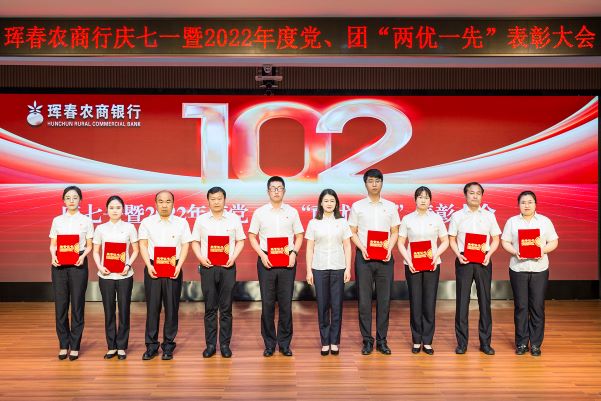 金融文化参讯-吉林(苗艳)为庆祝中国共产党成立102周年,6月28日,吉林珲春农商银行召开庆七一表彰大会。该行党委成员、部分党员团员代表60余人参会。