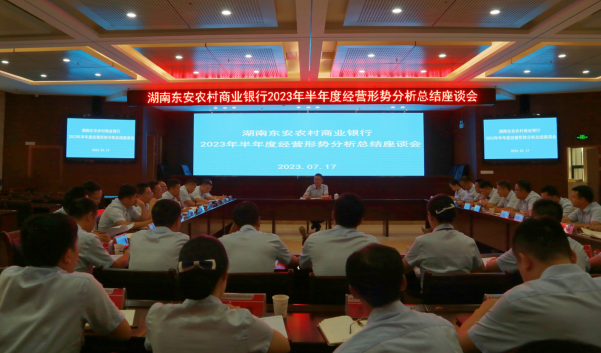 金融文化参讯-湖南(唐蝶)7月17日,东安农商银行召开2023年半年度经营形势分析总结会,会议由党委书记、董事长金伟主持,各网点负责人和机关部门相关人员参加会议。